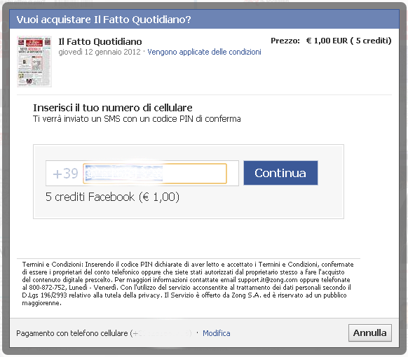 Acquistare e leggere Il Fatto Quotidiano su Facebook con i crediti o via SMS
