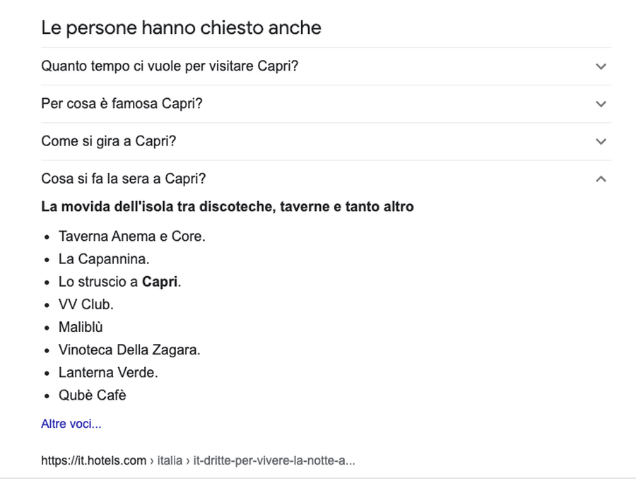 Un buon terreno di analisi arriva dalla serp di Google e dai vari suggest, completamento di ricerca e box di domande fatte dagli utenti. In una pagina web che vuoi ottimizzare per intercettare i fattori di ranking della vocal search può essere utile vare una sezione FAQ in grado di intercettare proprio queste domande.